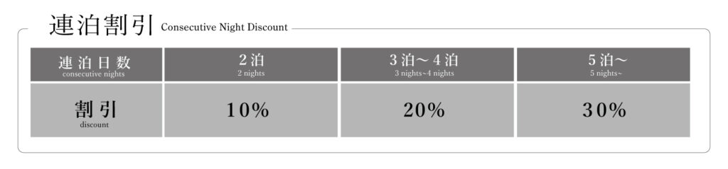 ・Discounted rates for consecutive nights: